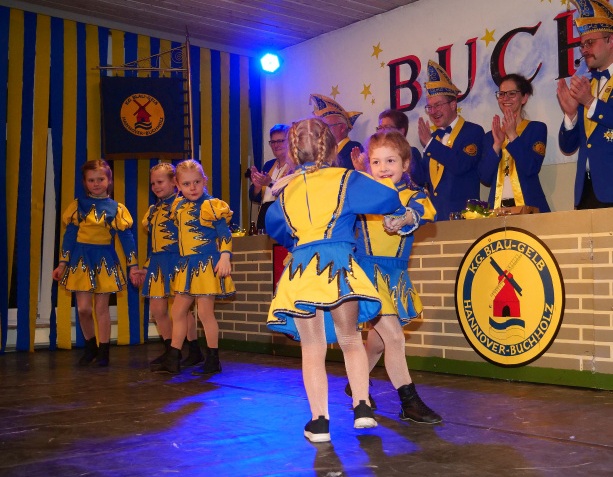 Wo unsere Minis noch niedlich über die Bühne tapsen, da lernen die Jungs und Mädels unserer Kindergarde (7 bis 10 Jahre) schon wie man sich gemeinsam zu witzigen und spaßigen Liedern auf der Bühne bewegt.